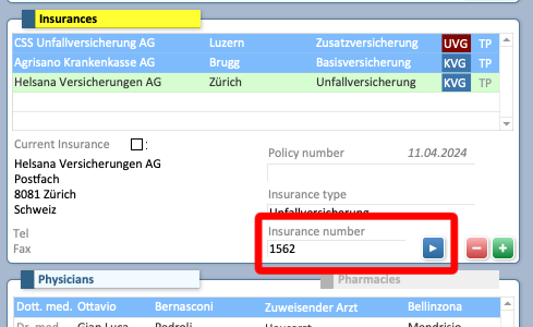 - ⚠ Changing this number may prevent the insurance from being recognized when the CardCover is read. If the insurance is not assigned automatically, manually enter the insurance number shown on the card to resolve the issue.