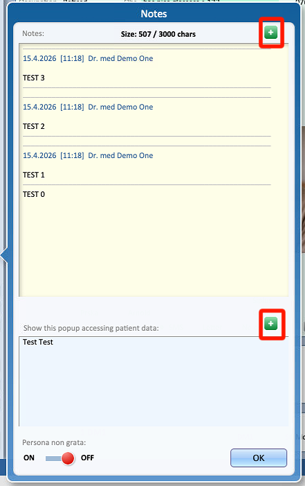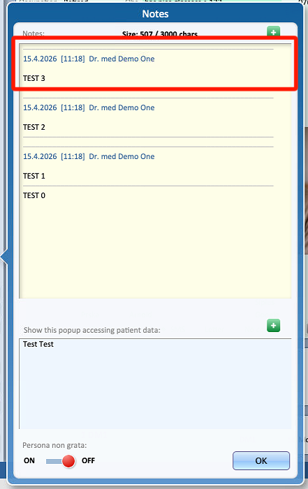 After entering the desired information, click OK to close the pop-up and save the note.