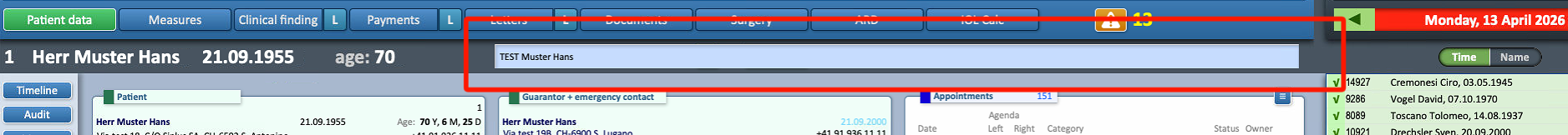 The lower field, if completed, will automatically appear (“pop up”) when accessing the patient’s data during billing or appointment creation.
