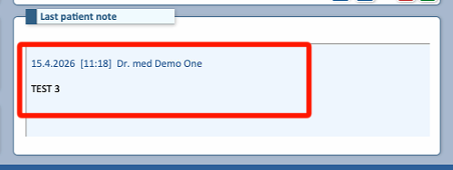 It is important to note that the last patient note displayed on the patient’s profile will only reflect the most recently created note in the upper (yellow) field.