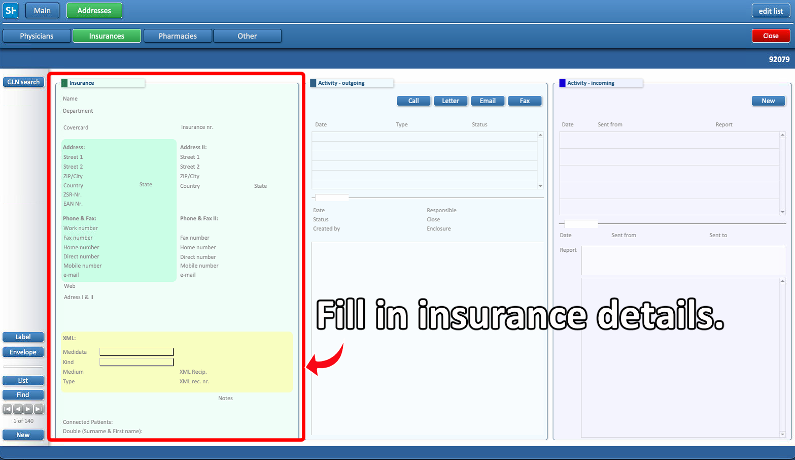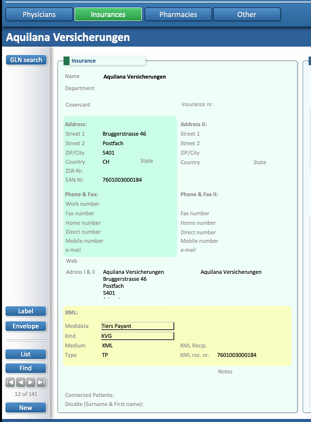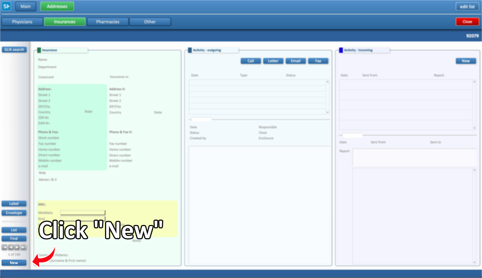 Press the “New” button to start adding a new insurance.