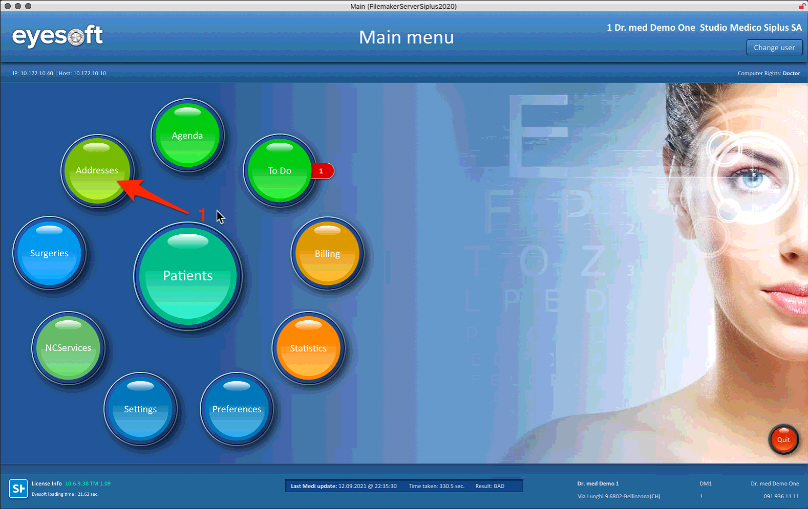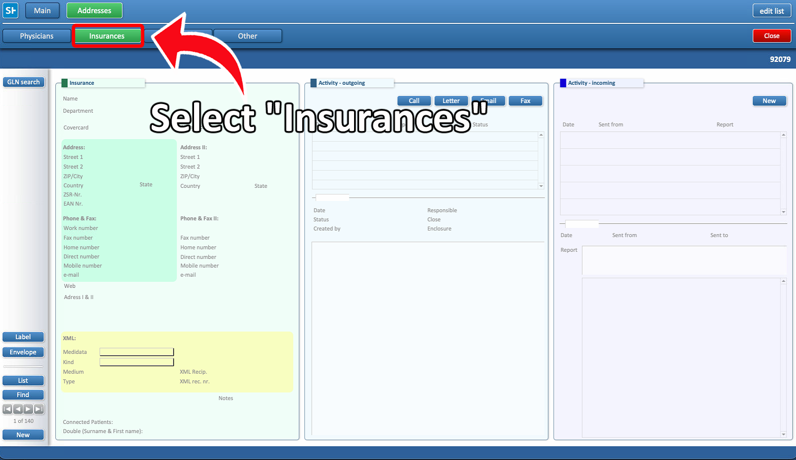 Select “Addresses” from the Main Menu to access stored contacts and insurance info.