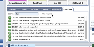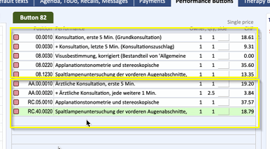 The system has created a mixed button that contains both the original TARMED codes and the new TARDOC codes.