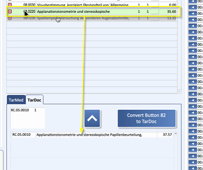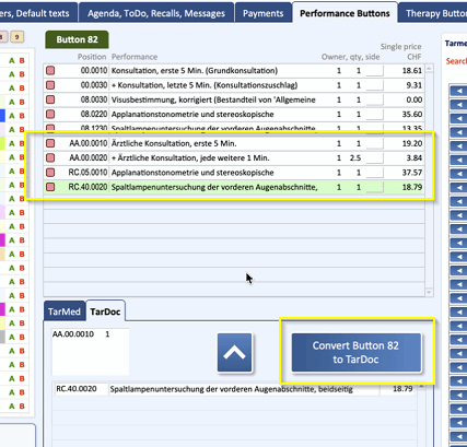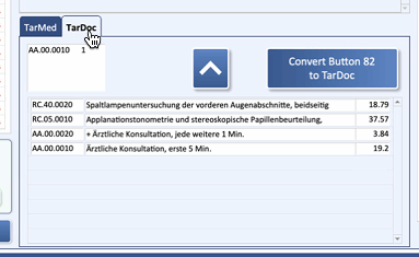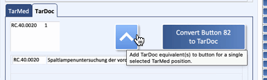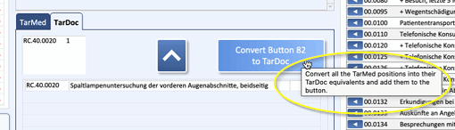 click the "button" in order to Convert ALL the TarMed positions into their TarDoc equivalents and add them to the button