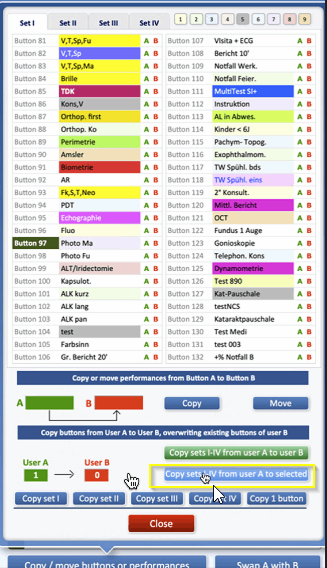 Once a set of buttons (e.g., set 1 of Dr. Demo 1) has been correctly converted and validated, it can be copied to other user profiles.