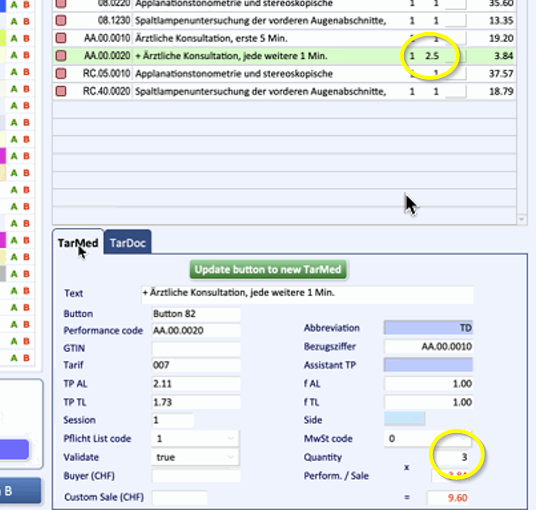 Quantity: If a TARMED performance is converted, the quantity may need to be manually edited