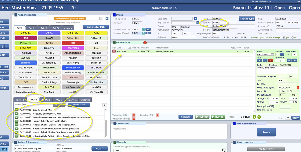 Note: The mixed button will automatically add only the appropriate performances (TARDOC or TARMED) based on the selection in the invoice