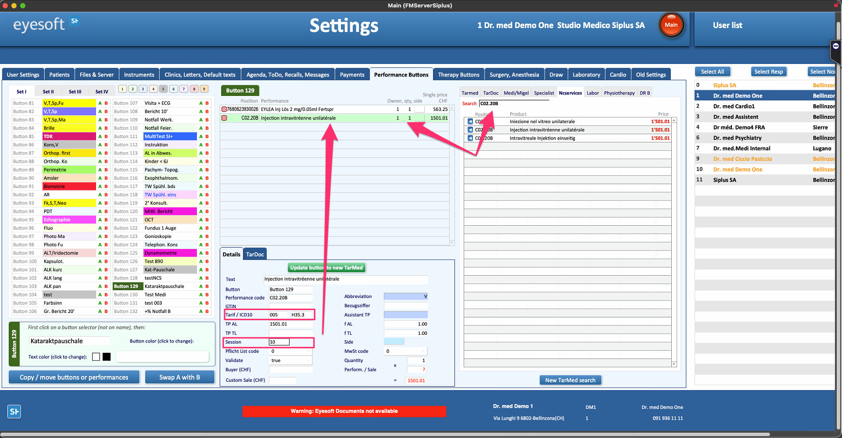 - Search for the medication in the Medi tab and enter it in the button with session=10
