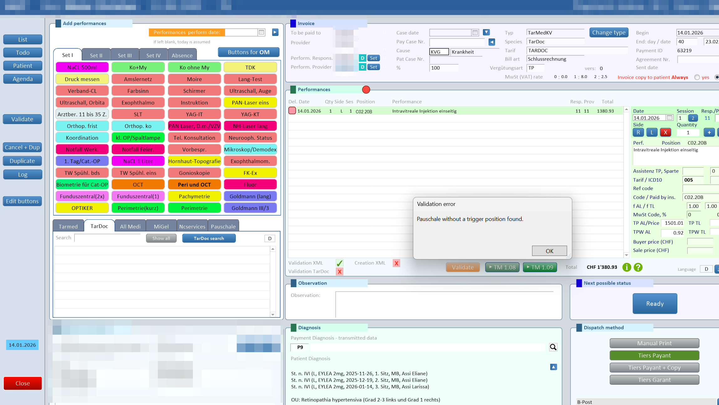 - Then search for the service in the NCService catalogue and enter it, specifying the ICD-10 code and session code =10