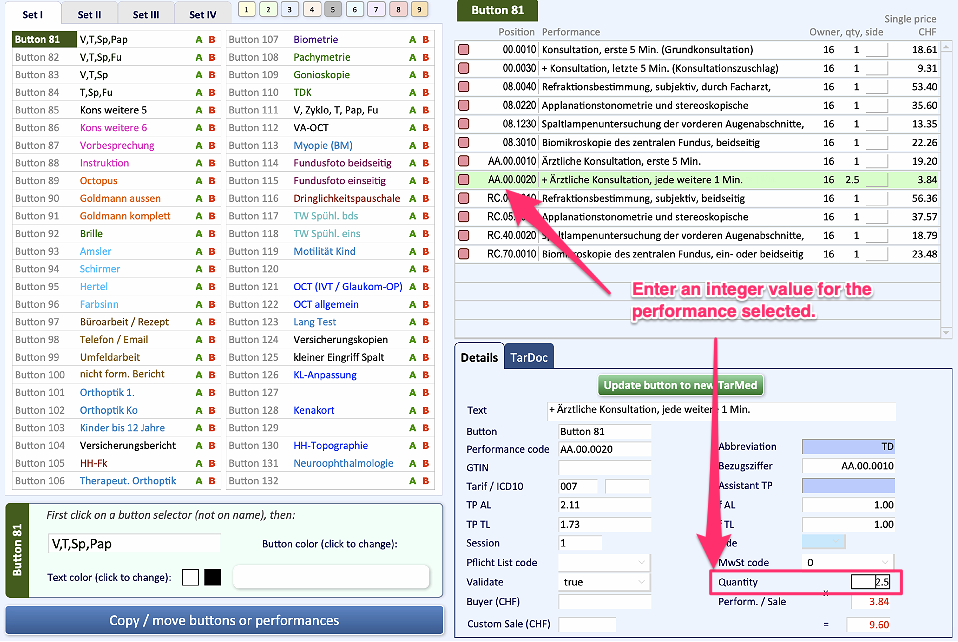 b. If, on the other hand, you wish to correct the quantity in the buttons, as we recommend, since what you do in the buttons will be permanent, you will need to edit the value of the individual service in the buttons by following the procedure below.
