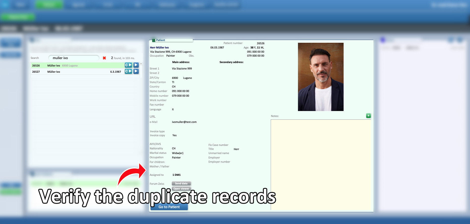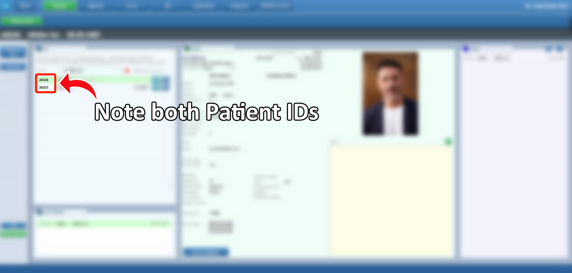 - If multiple records appear for the same patient, carefully verify that they are true duplicates. Take note of both ID numbers, as you will need them during the merge process.