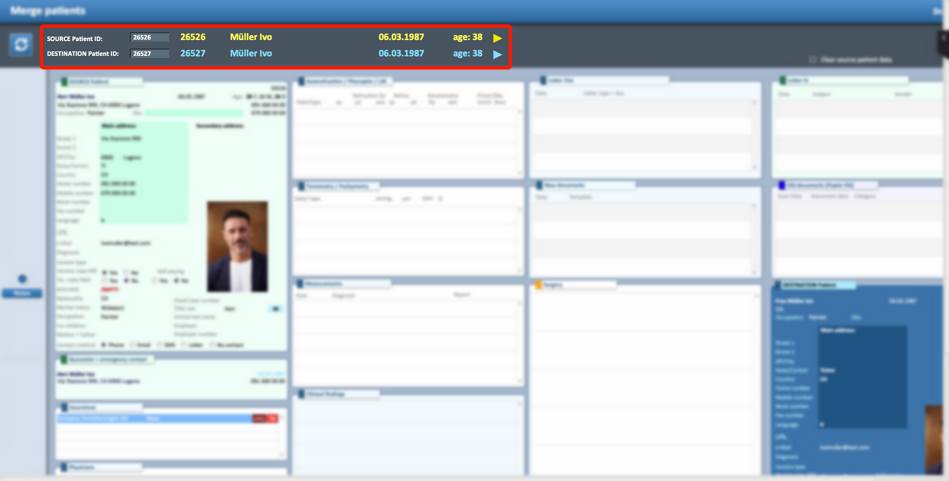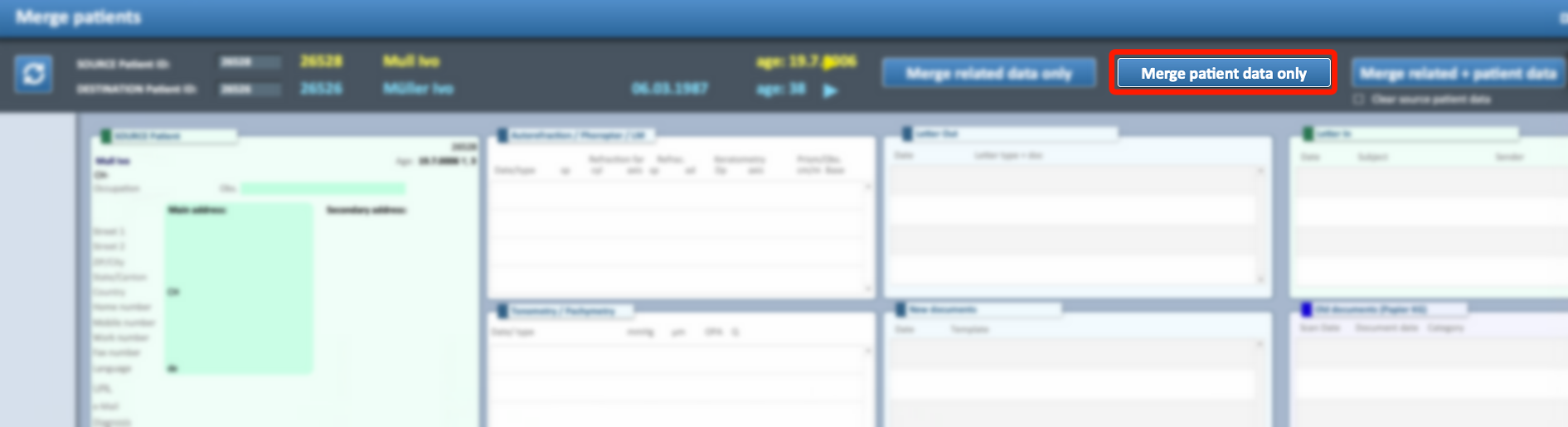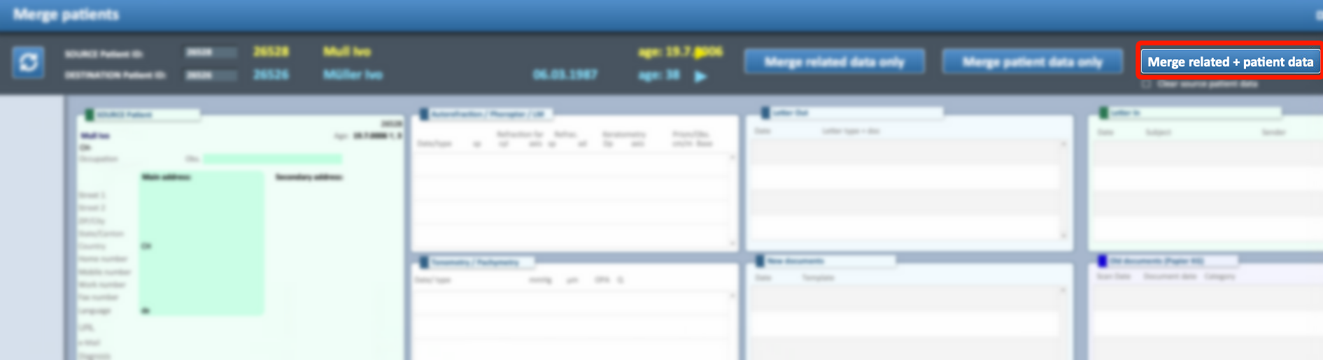⚠ Important: When doing a merge, if the option clear source patient data is active, any data inside the Source Patient ID will be deleted permanently.