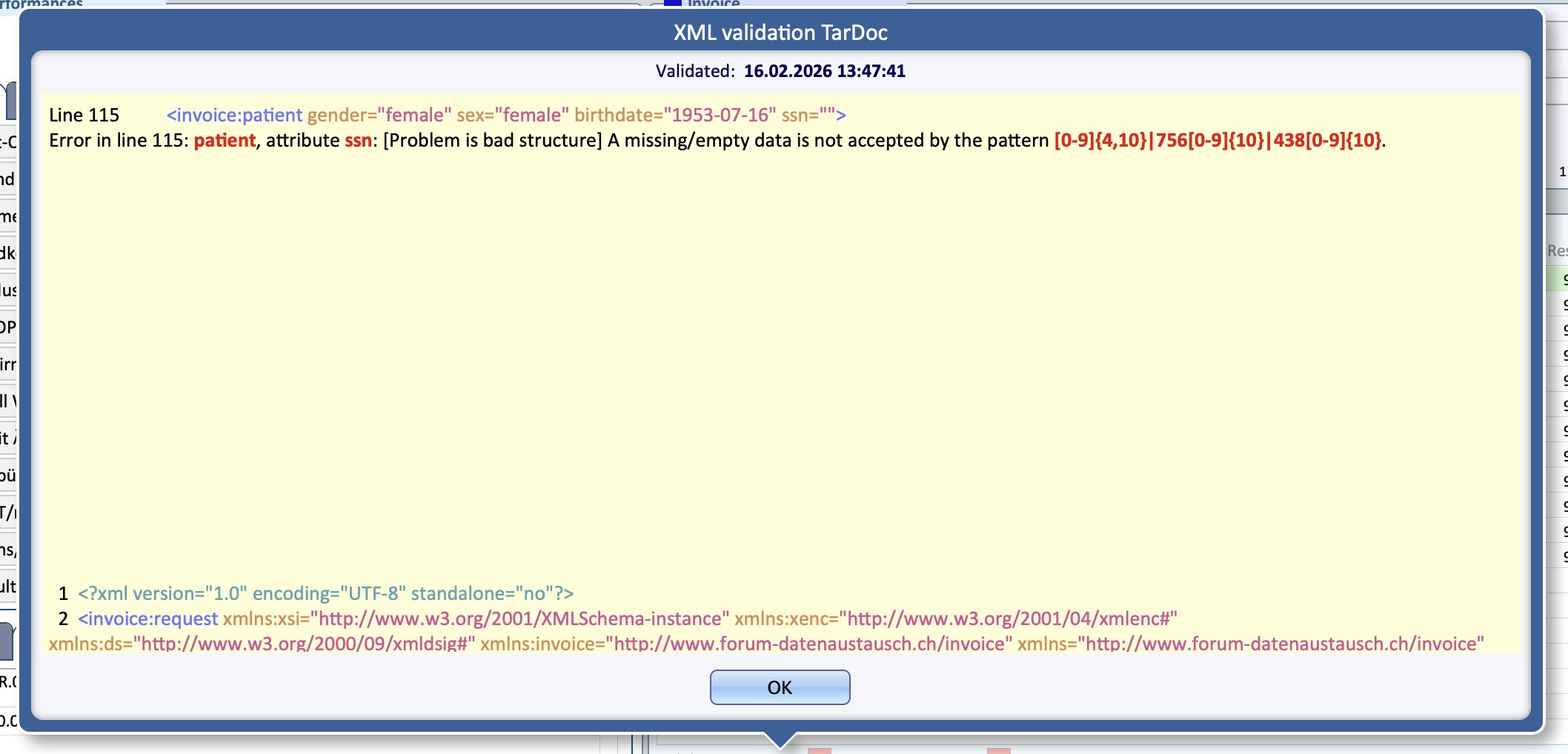 Solution: Make sure the patient’s canton is correctly filled in in the corresponding field before vaidating the invoice.